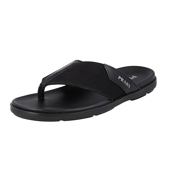 Prada Men's Black Leather Runway Laufsteg Square Eckig Sandals 2X3071