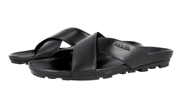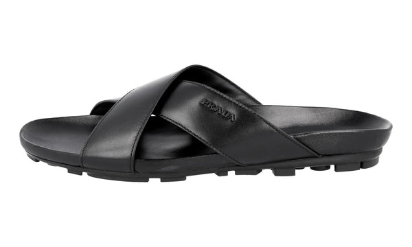 Prada Men's Black Leather Runway Laufsteg Square Eckig Sandals 2X3071