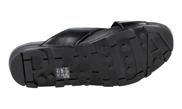 Prada Men's Black Leather Runway Laufsteg Square Eckig Sandals 2X3071