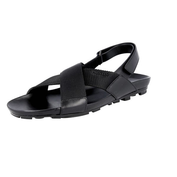 Prada Men's Black Leather Runway Laufsteg Square Eckig Sandals 2X3071