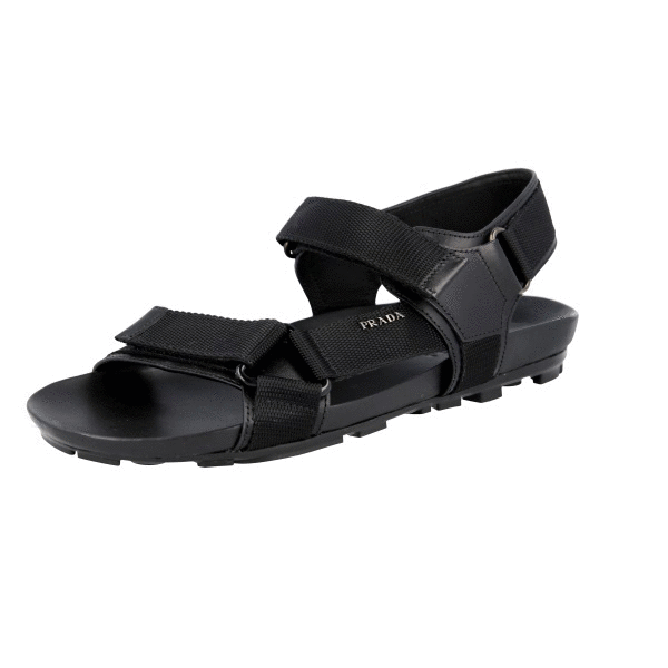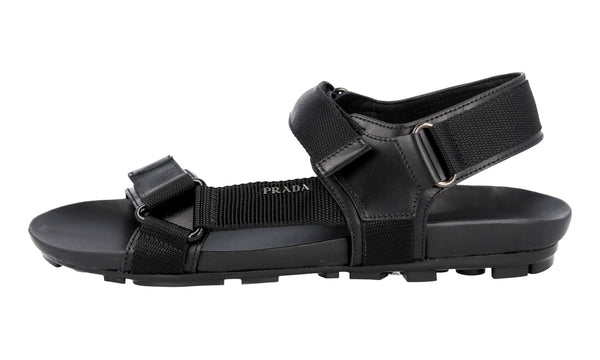 Prada Men's Black Leather Runway Laufsteg Square Eckig Sandals 2X3071