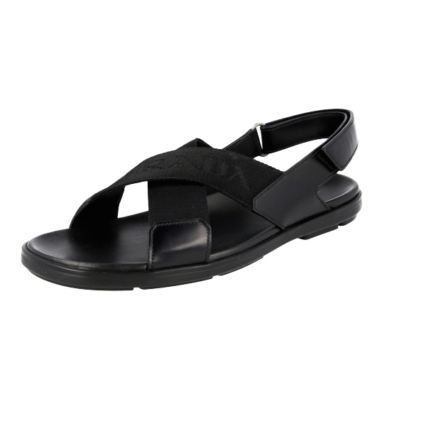 Prada Men's Black Leather Runway Laufsteg Square Eckig Sandals 2X3071