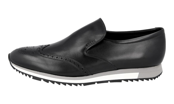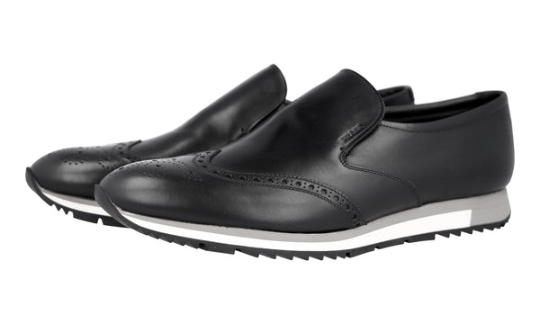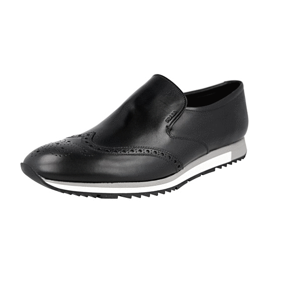 Prada Men's Black Full Brogue Leather Slip-on Sneaker 2DE104