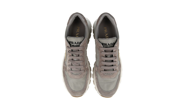 Prada Men's Grey Leather + Nylon Prax Triangolo Sneaker 2EE369