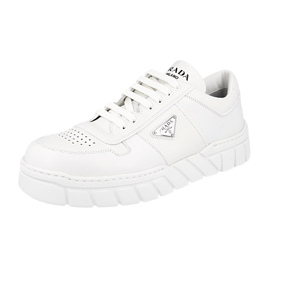 Prada Men's White Leather Downtown Bold Sneaker 2EE378