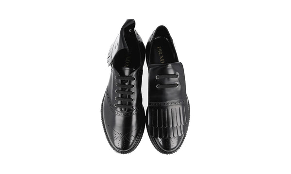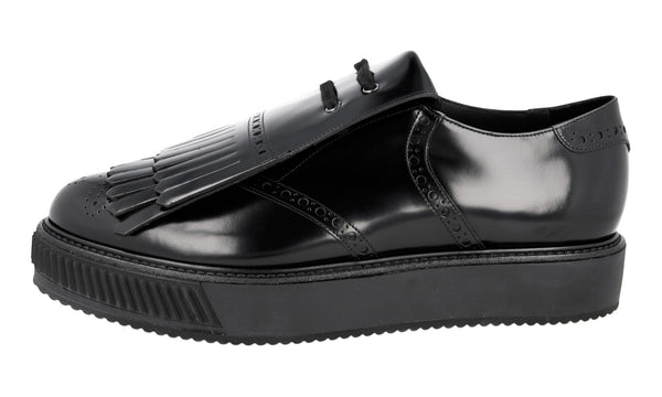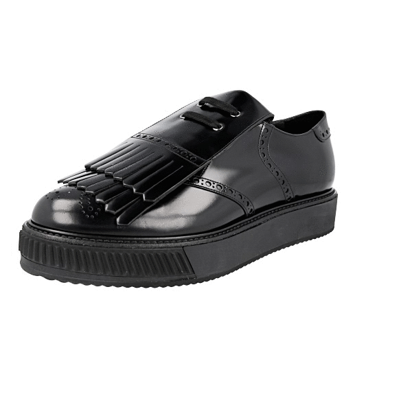 Prada Men's Black Brushed Spazzolato Leather Platform Kiltie Tassle Sneaker 2EG303
