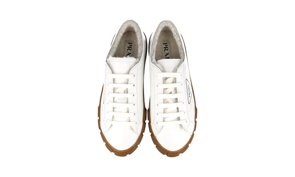 Prada Men's White Leather Cassetta Wheel Shearling Fur Sneaker 2EG323