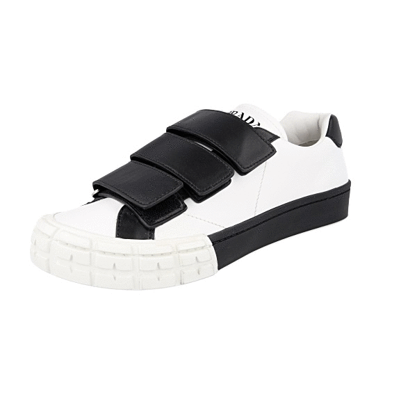 Prada Men's White Leather Cassetta Wheel Hook N Loop Sneaker 2OG068