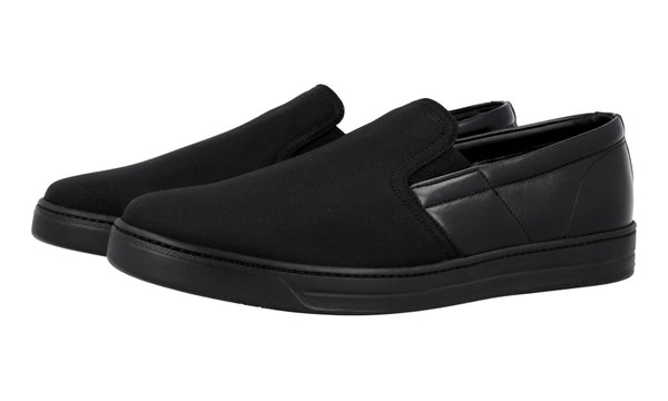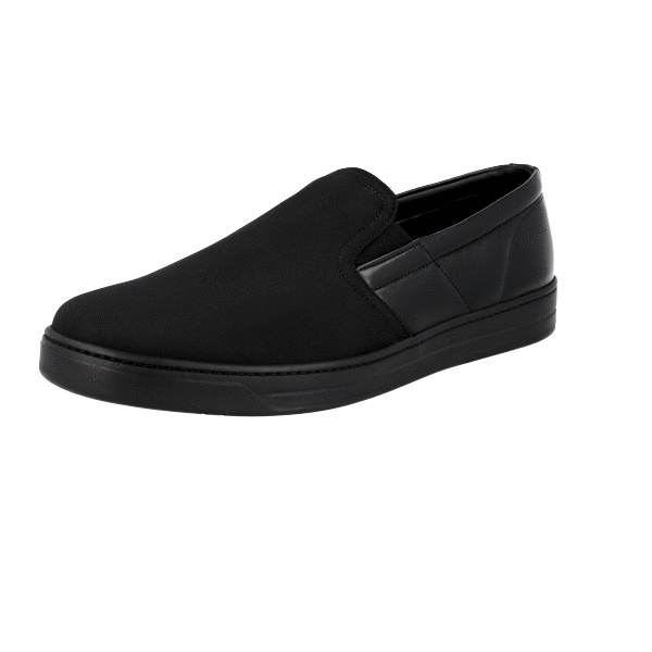 Prada Men's Black Leather + Nylon Slip-on Downtown Sneaker 4D3010