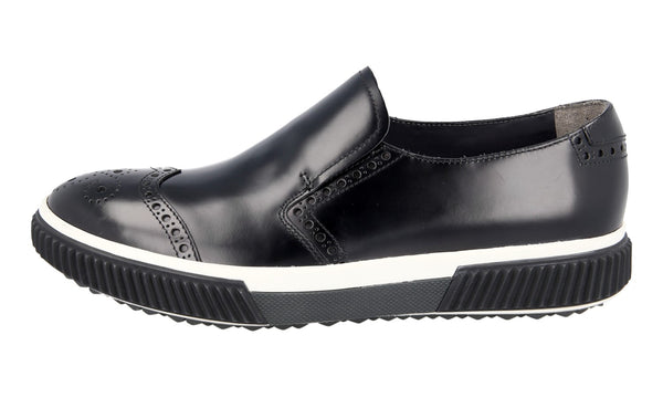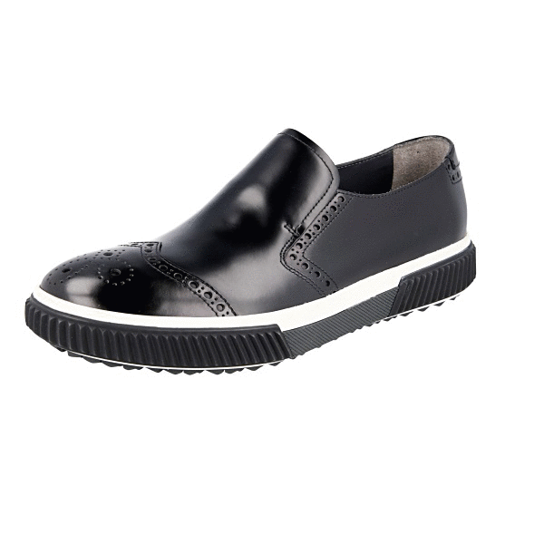 Prada Men's Black Full Brogue Leather Stratus Slip-on Sneaker 4D3115