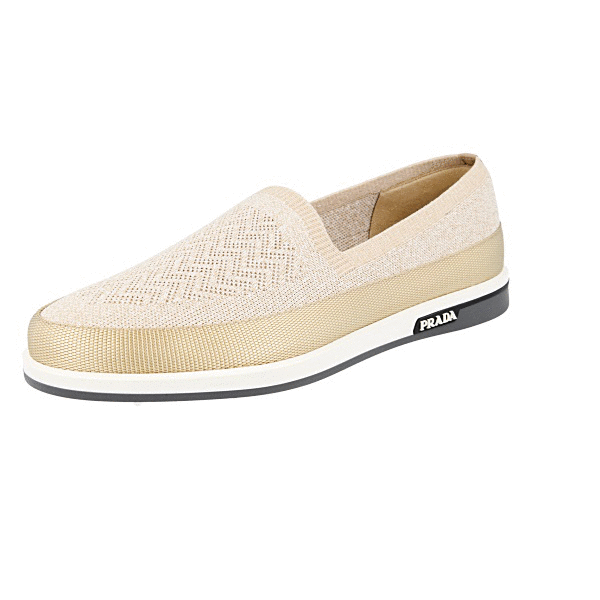 Prada Men's Beige Knit St. Tropez Pique Loafer Slip-on Sneaker 4D3396
