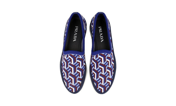 Prada Men's Blue Knit St.tropez Jaquard Loafer Slip-on Sneaker 4D3398