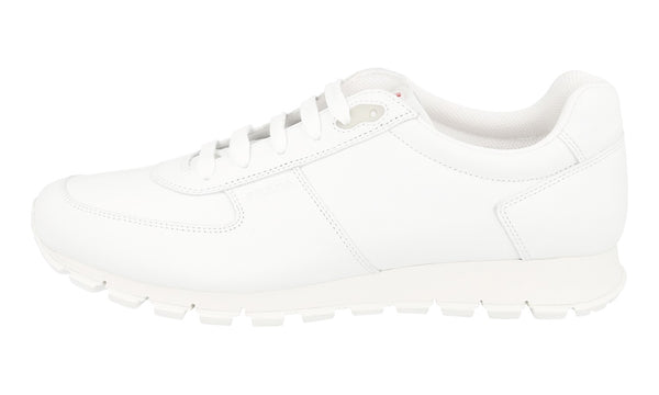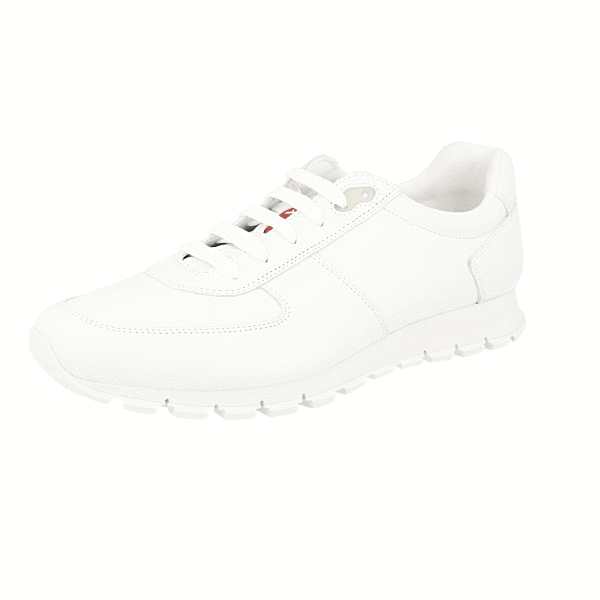 Prada Men's White Leather Prax Red Stripe Linea Rossa Sneaker 4E2700