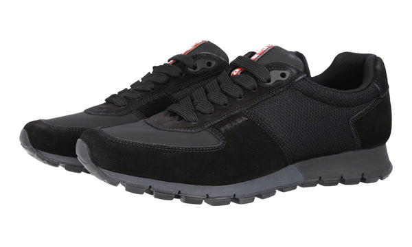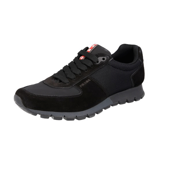 Prada Men's Black Leather Prax Red Stripe Linea Rossa Sneaker 4E2700