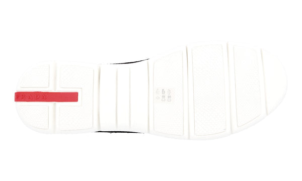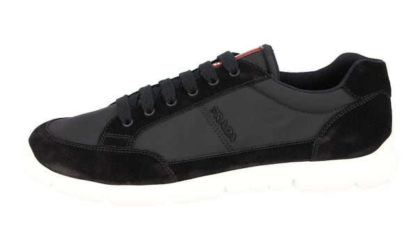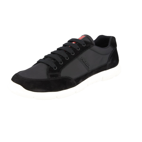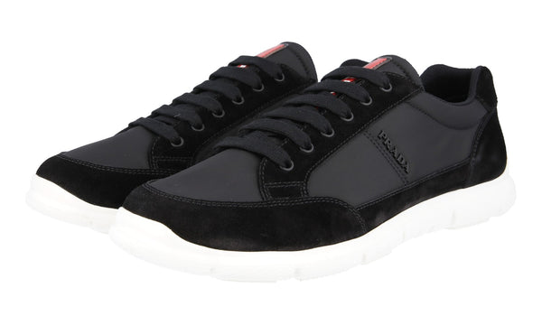 Prada Men's Black Leather Nylon Red Stripe Linea Rossa Sneaker 4E3222