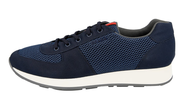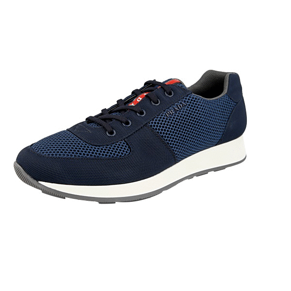 Prada Men's Blue Mesh Red Stripe Sneaker 4E3247