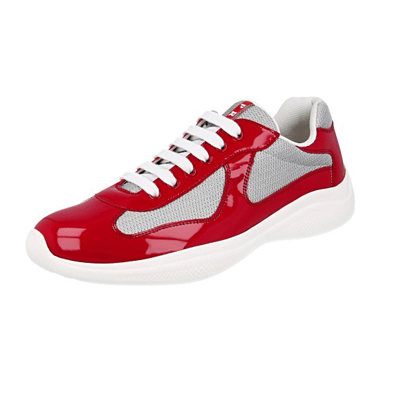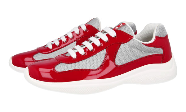 Prada Men's Red Leather Americas Cup Sneaker 4E3400