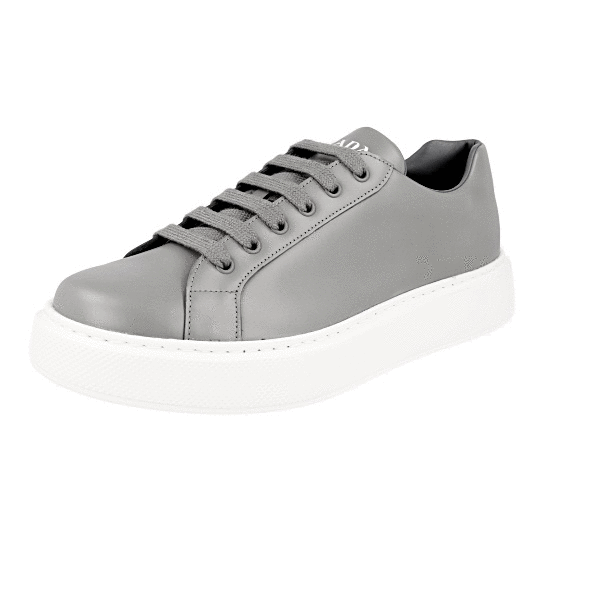 Prada Men's Grey Brushed Spazzolato Leather Macro Sneaker 4E3489