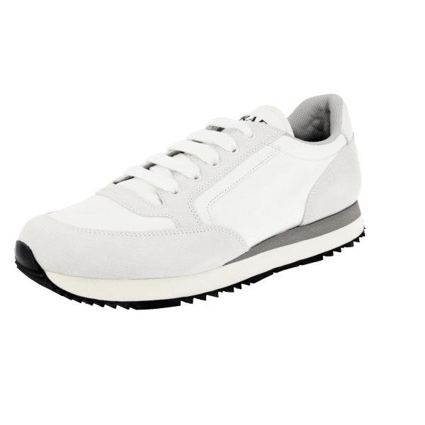 Prada Men's White Leather Nylon Running Sneaker 4E3537