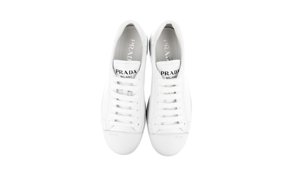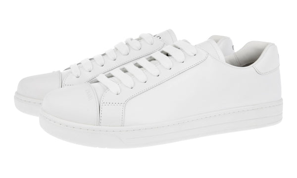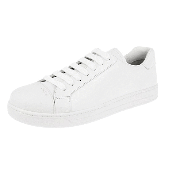 Prada Men's White Brushed Spazzolato Leather Downtown Cap Toe Sneaker 4E3539