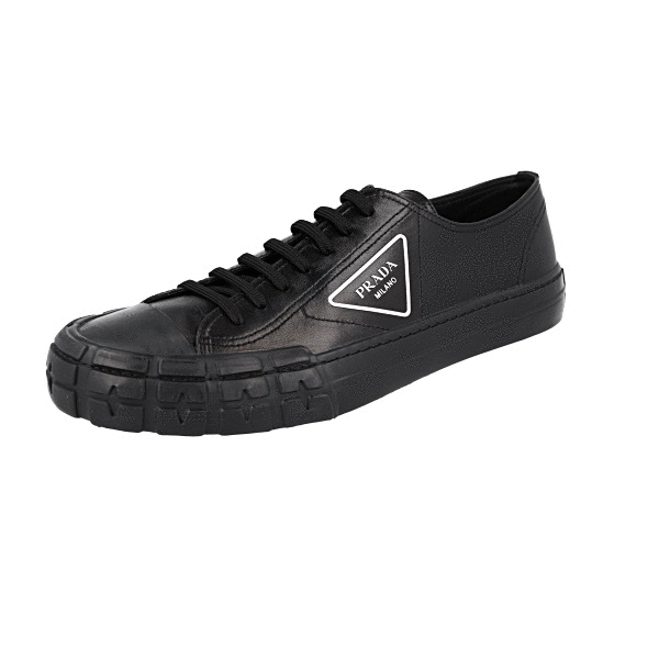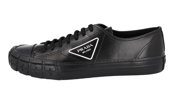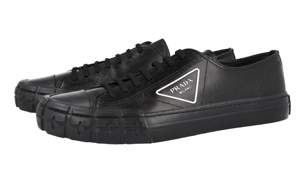 Prada Men's Black Leather Cassetta Wheel Sneaker 4E3548
