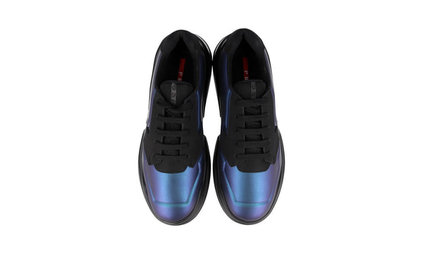 Prada Men's Blue Leather Polarius Iridescent Sneaker 4E3566