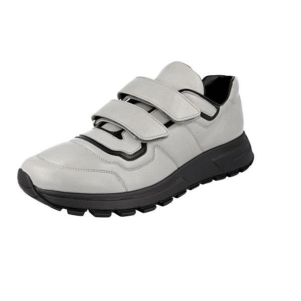 Prada Men's Grey Leather Prax Hook N Loop Sneaker 4O3508