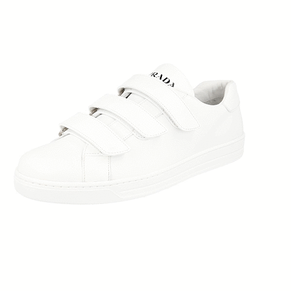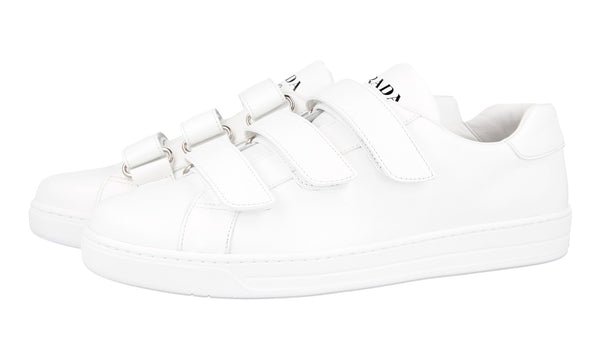 Prada Men's White Leather Downtown Hook N Loop Sneaker 4O3526