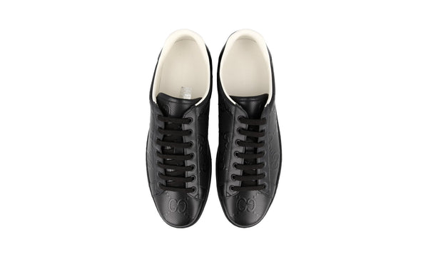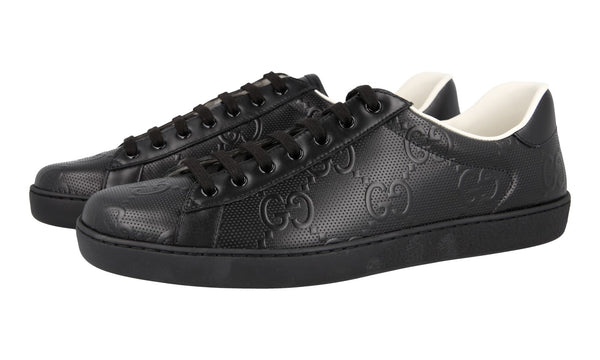 Gucci Men's Black Leather Pique Monogram Gg Ace Sneaker 625787