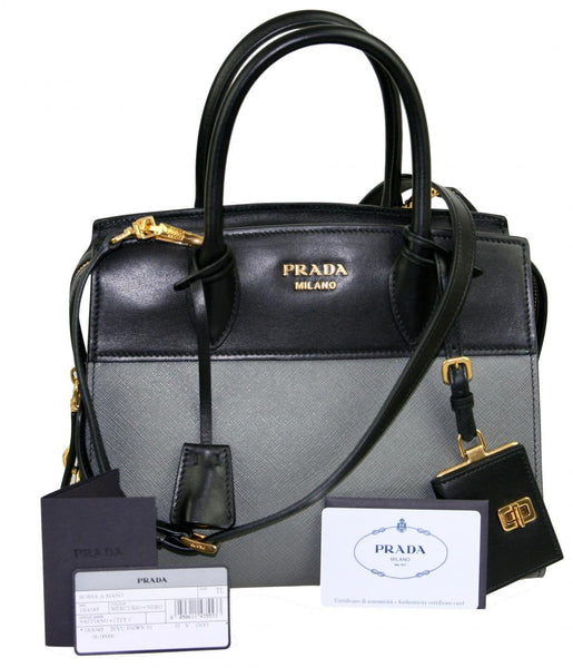 Prada Women's Grey Saffiano Leather Esplanade Shoulder Bag 1BA045