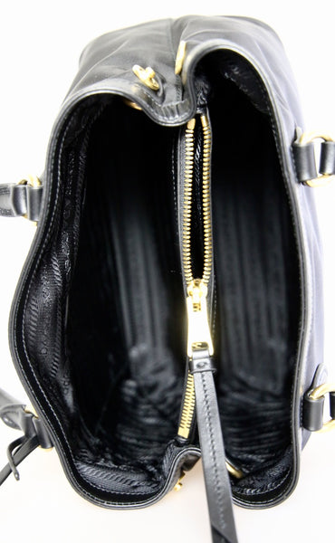 Prada Women's Black Leather Ribbon Shoulder Bag 1BD067