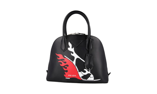 Prada Women's Red Saffiano Leather Floral Applique Galleria Shoulder Bag 1BA905