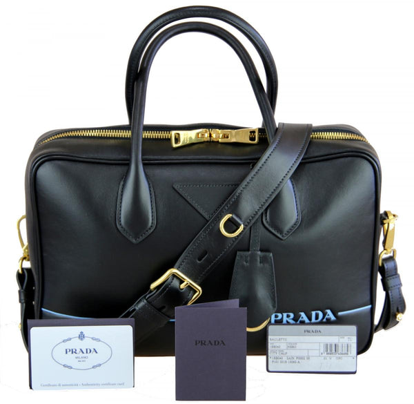 Prada Women's Black Leather Ribbon Shoulder Bag 1BD067