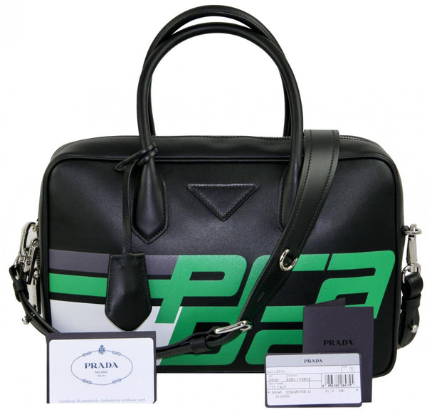 Prada Women's Black Leather Ribbon Shoulder Bag 1BD067