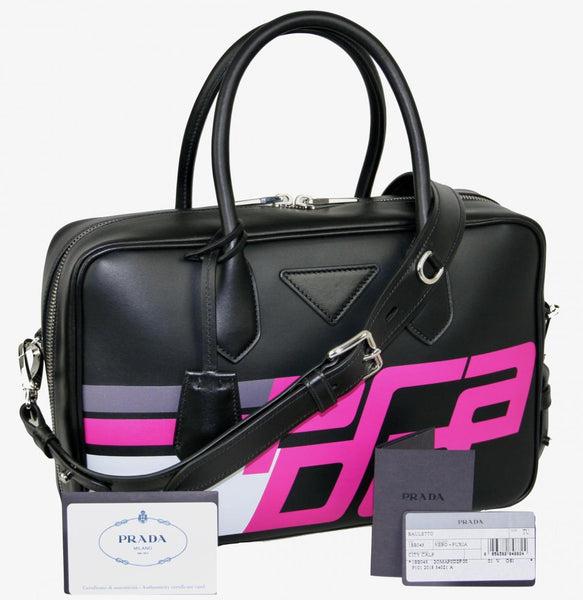 Prada Women's Black Leather Ribbon Shoulder Bag 1BD067