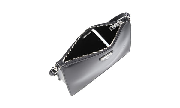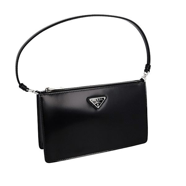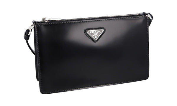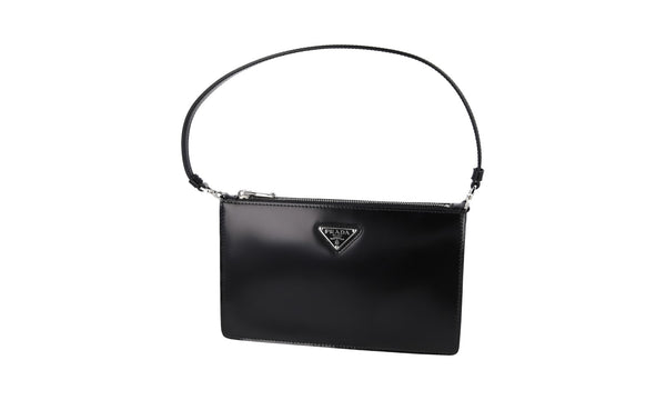 Prada Women's Black Brushed Spazzolato Leather Triangle Evening Purse 1BC155