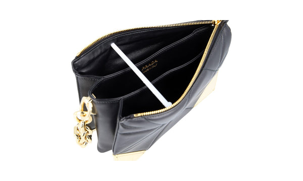 Prada Women's Black Leather Ribbon Shoulder Bag 1BD067
