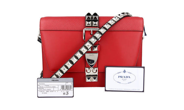 Prada Women's Red Saffiano Leather Elektra Shoulder Bag 1BD120
