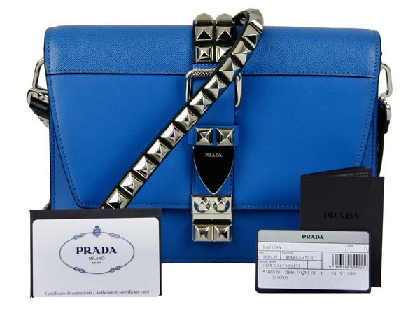 Prada Women's Blue Saffiano Leather Elektra Shoulder Bag 1BD120