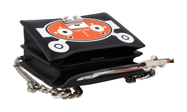 Prada Women's Black Leather Jewels Ribbon Shoulder Bag 1BD067