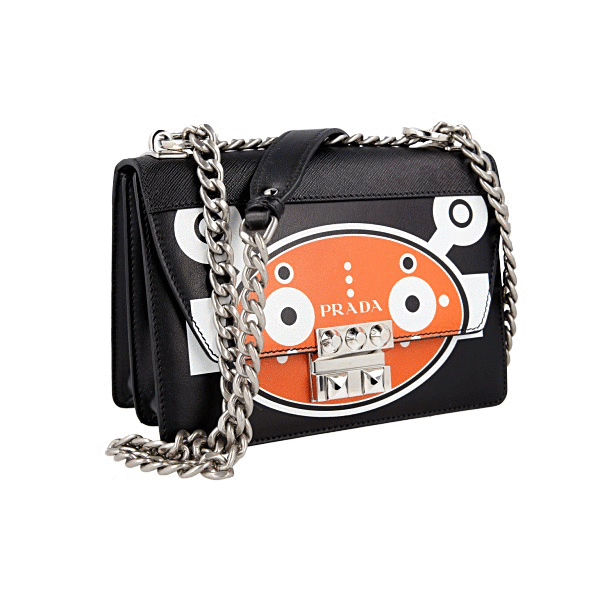 Prada Women's Black Leather Ribbon Shoulder Bag 1BD067