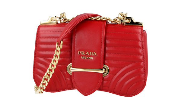 Prada Women's Red Leather Sidonie Diagramme Shoulder Bag 1BD219