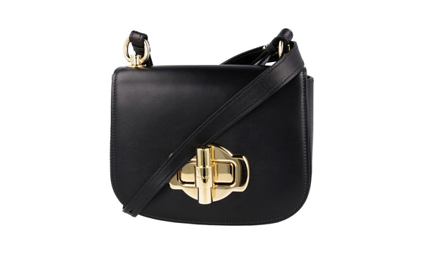 Prada Women's Black Leather Saddle Corsaire Shoulder Bag 1BD239