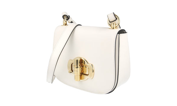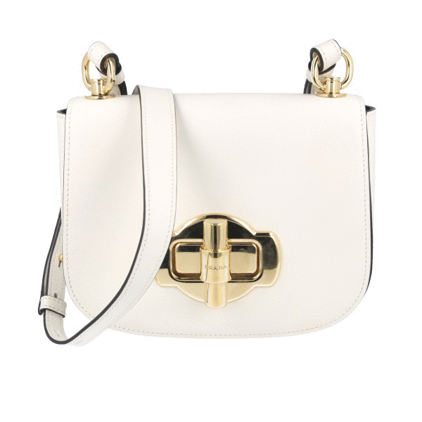 Prada Women's White Leather Saddle Corsaire Shoulder Bag 1BD239