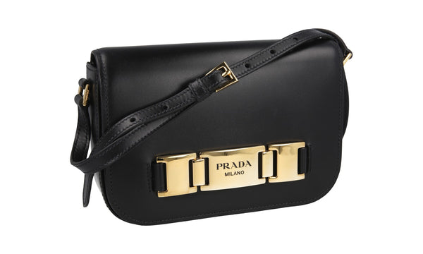 Prada Women's Black Leather Ribbon Shoulder Bag 1BD067