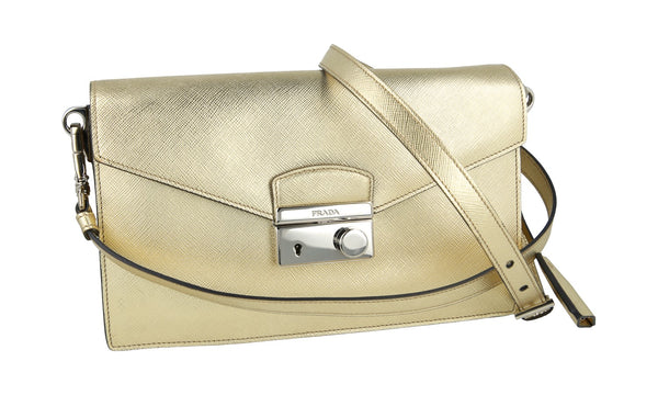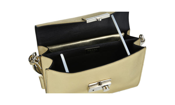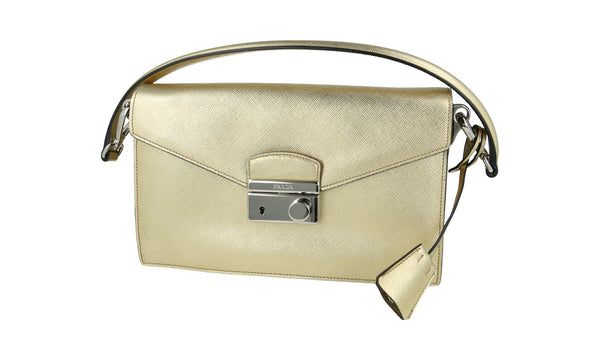 Prada Women's Gold Saffiano Leather Shoulder Bag 1BD924