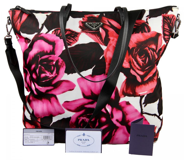 Prada Women's Red Saffiano Leather Floral Applique Galleria Shoulder Bag 1BA905