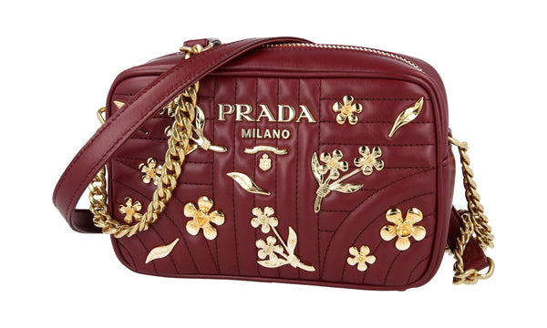 Prada Women's Red Leather Diagramme Shoulder Bag 1BH084