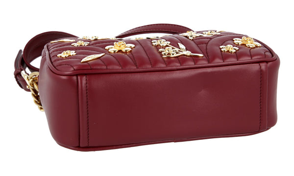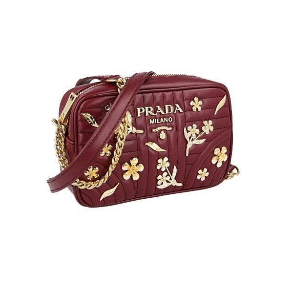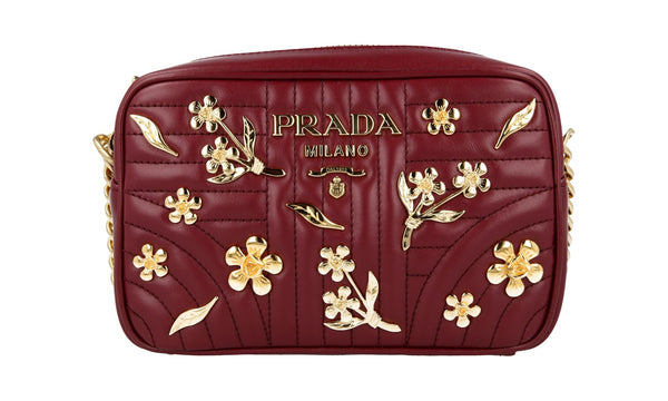 Prada Women's Red Saffiano Leather Floral Applique Galleria Shoulder Bag 1BA905
