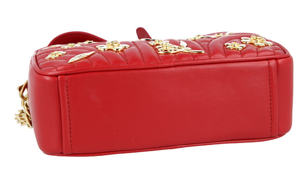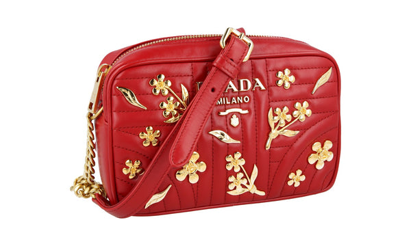 Prada Women's Red Saffiano Leather Floral Applique Galleria Shoulder Bag 1BA905